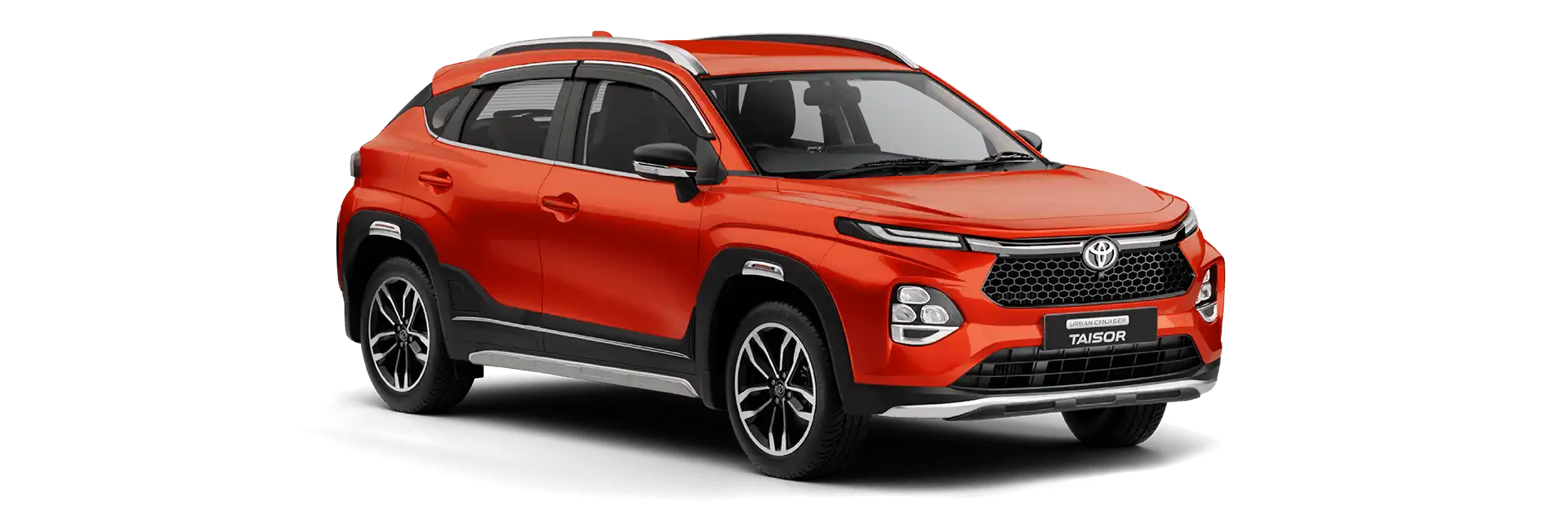 The Toyota Taisor E is the entry-level, base variant of the sub-4 meter urban SUV, offering a budget-friendly option based on the Maruti Suzuki Fronx. It features a 1.2L naturally aspirated petrol engine (90 PS/113 Nm) available in manual transmission, with petrol and CNG options. Key features include LED DRLs, projector headlamps, dual-tone interiors, front airbags, and automatic climate control.